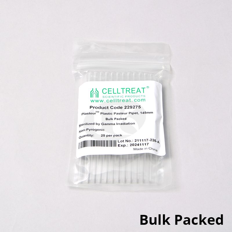P03-132-020 3488-025  Polystyrene Sterile Pasteur Pipet 5.75 inch Bulk Packed, 25/Bag 500/CS