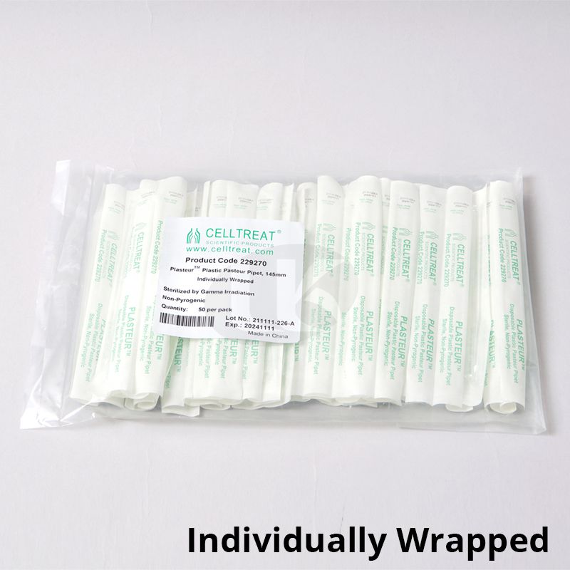 P03-132-016 3488-003  Polystyrene Sterile Pasteur Pipet 9 inch Individually Wrapped, 50/Bag 200/CS
