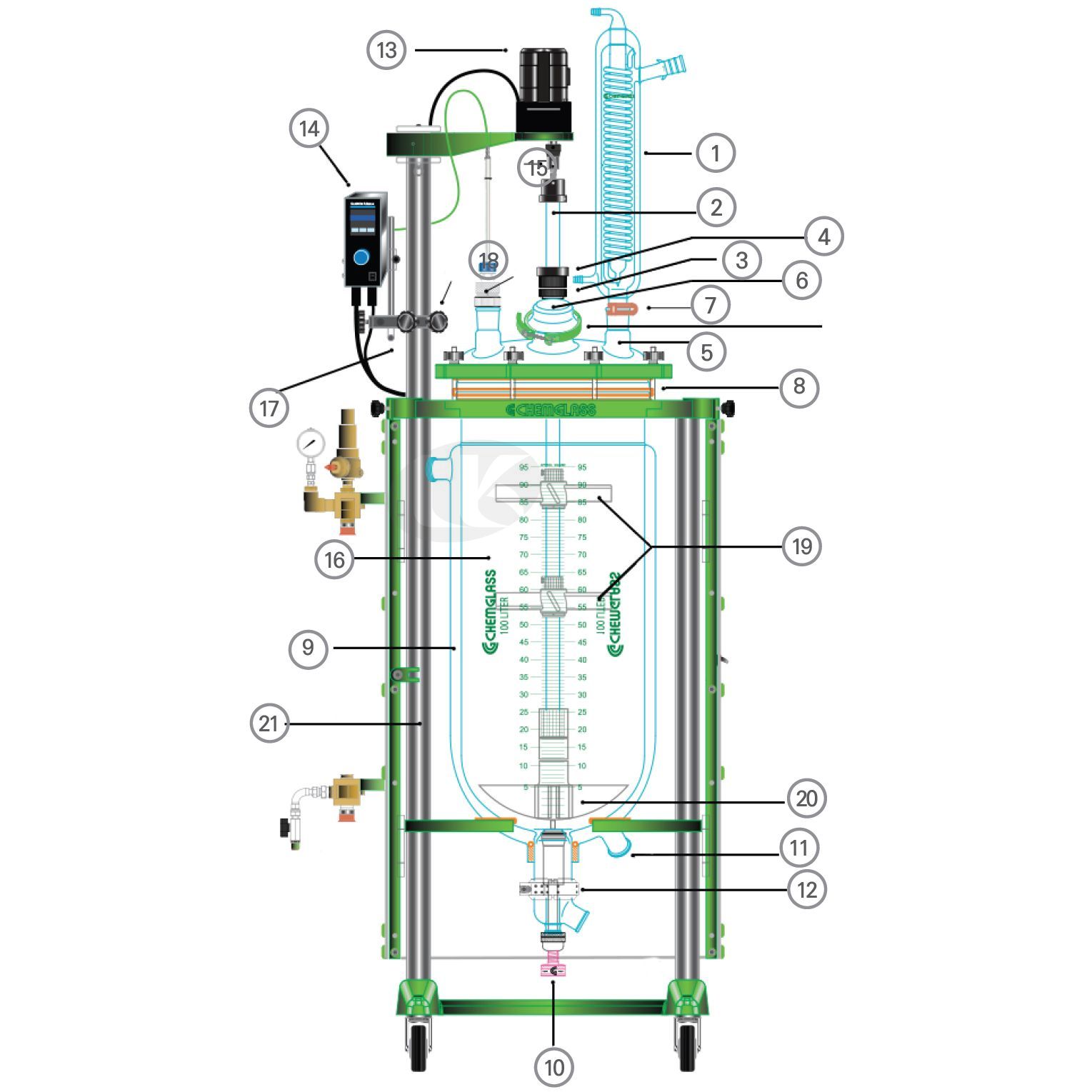 100L Jacketed Reaction Vessel, Tall, 3" Beaded Pipe, Detachable
